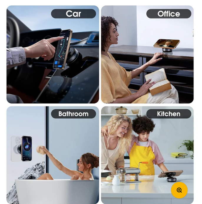 Strong vacuum suction paired with magnetic grip delivers rock-solid hold throughout your task, even on humid bathroom tiles or slick car interiors. No adhesives, no residue—just click on your phone and go. Compatible with most smartphones using metal or magnetic ring cases.